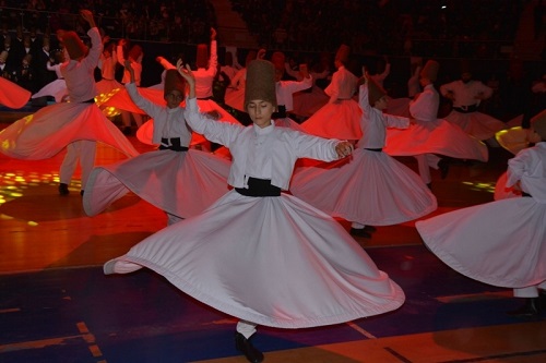 Mevlevi Üstadı Mustafa Özbağ’ın doyumsuz sohbetinin ardından 100 semazen ile 100 sazendenin gösterisi yapıldı.