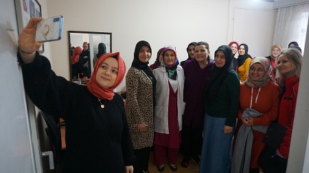 Erenler Mahallesi’nde bulunan İZMEK binasına giren Başkan Hürriyet, kadın kursiyerlerin isteklerini dinledi. Kursiyerlerin çok küçük bir alanda eğitim aldıklarını fark eden Başkan Hürriyet, “Burası sizin için küçük bir bina. Ben taşınma talimatını burayı görür görmez verdim ama zaten İZMEK hocalarımız şu an da birkaç yer bulmuşlar. En kısa sürede sizi daha rahat edeceğiniz bir binaya taşıyacağız” ifadelerini kullandı.